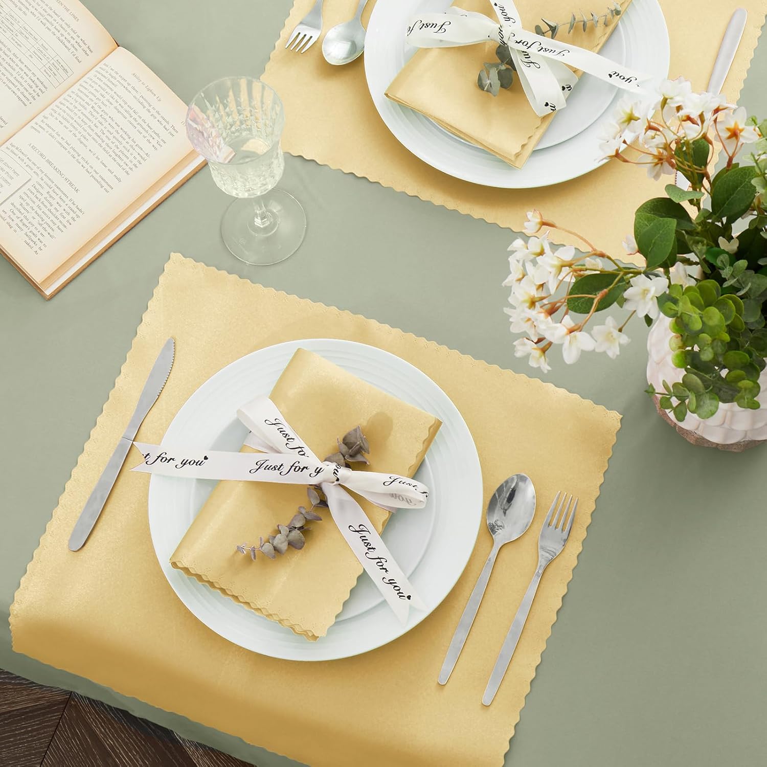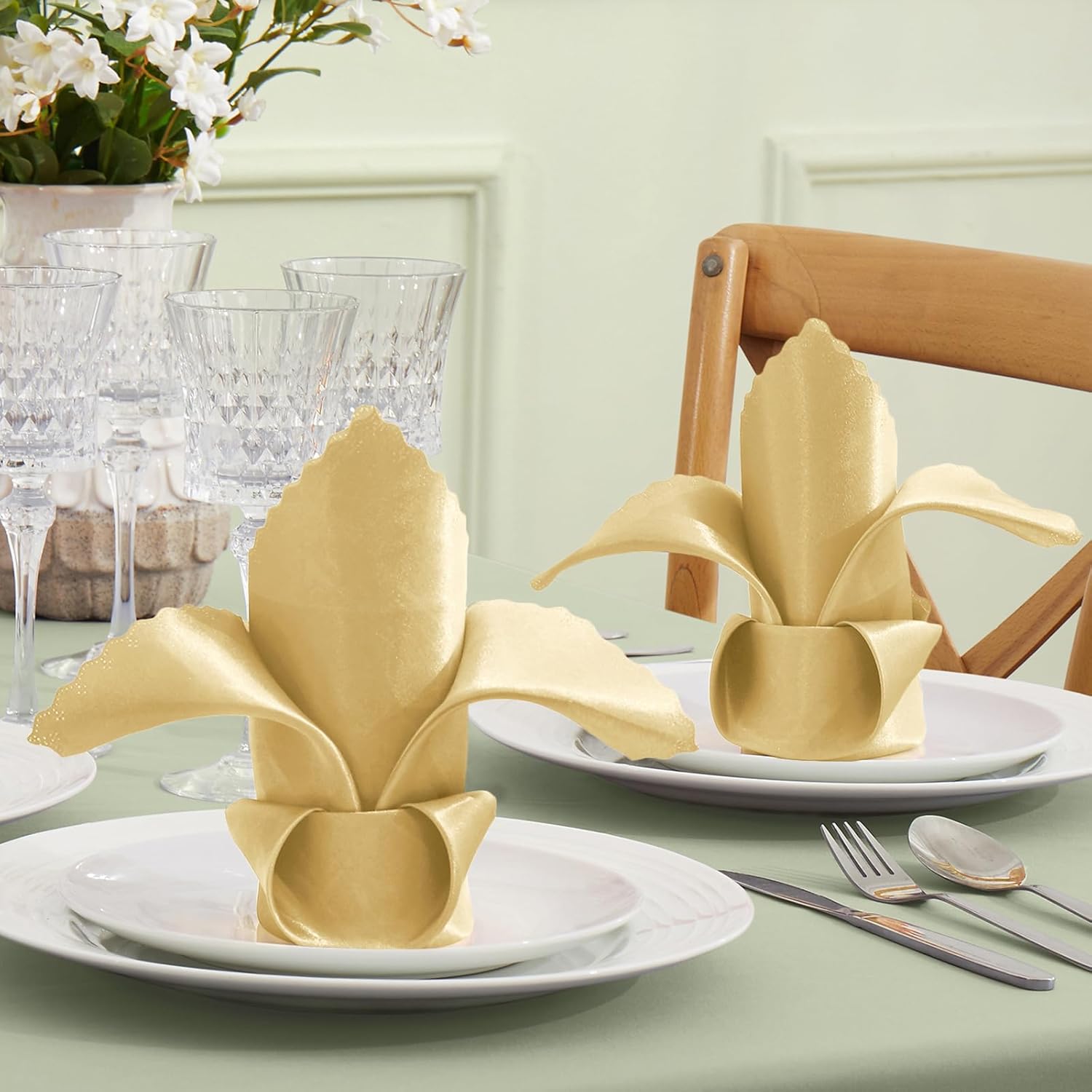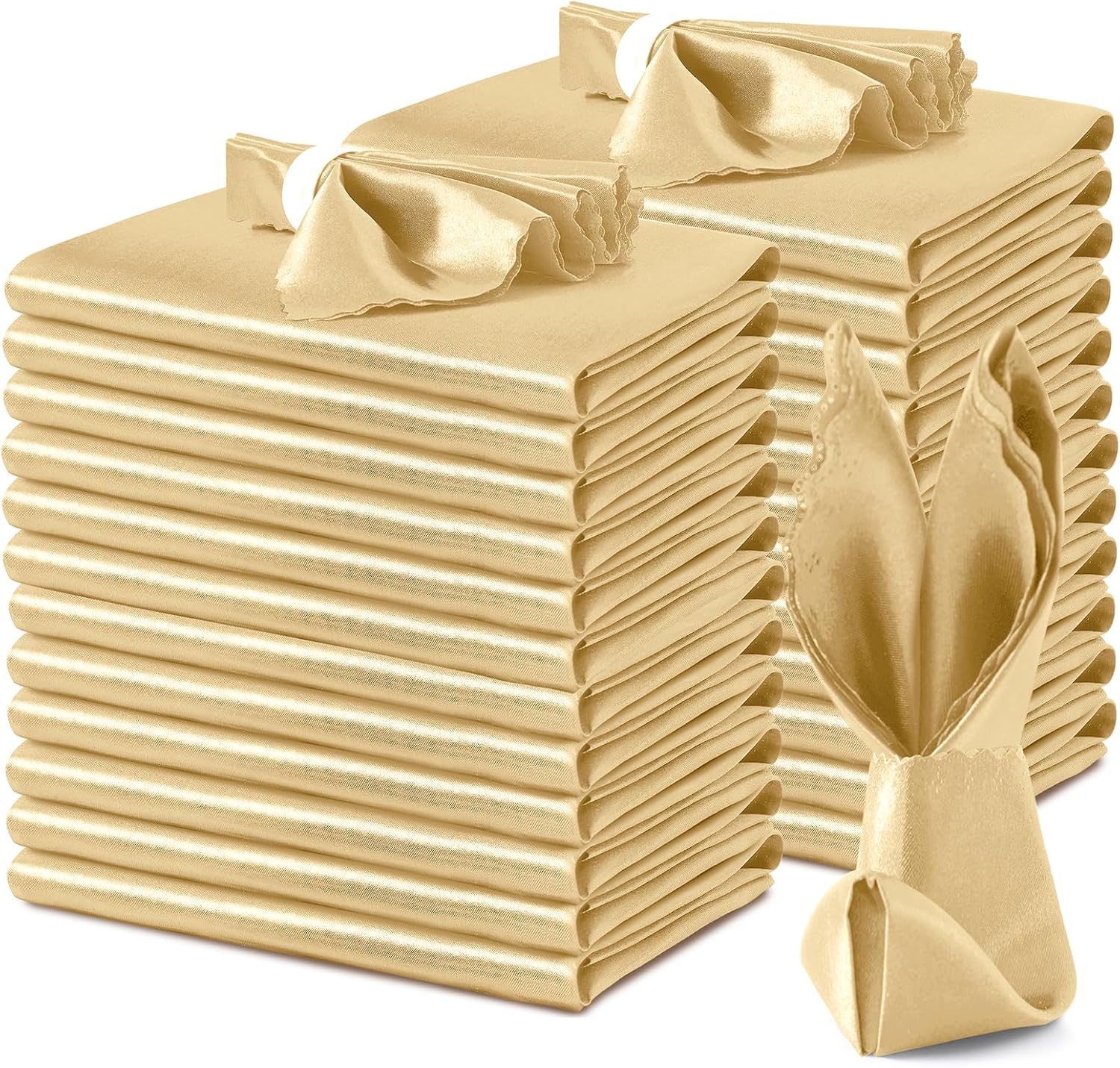 VACVELT 24 Pack Gold Satin Napkins – 12×12 Inch Scalloped Dinner Napkins for Wedding, Restaurant, Banquet & Party
